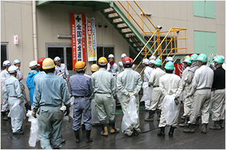 当社では毎年、社長以下主要事業所および協力会社の責任者、労働組合の代表者が集まり、労働災害反省会を実施しております。これまでの労働災害の事例を踏まえ、どうすればゼロ災害職場を作れるかという観点で、取り組み事例の紹介や様々な議論が繰り広げられます。全社を挙げて「安全に厳しい」企業風土造りに取り組んでいます。