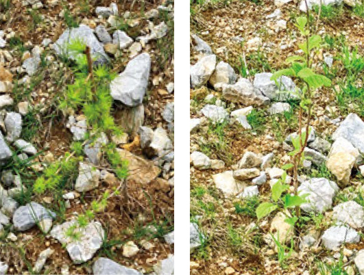 成長した試験区画内の鹿不嗜好性植物(2025年5月)