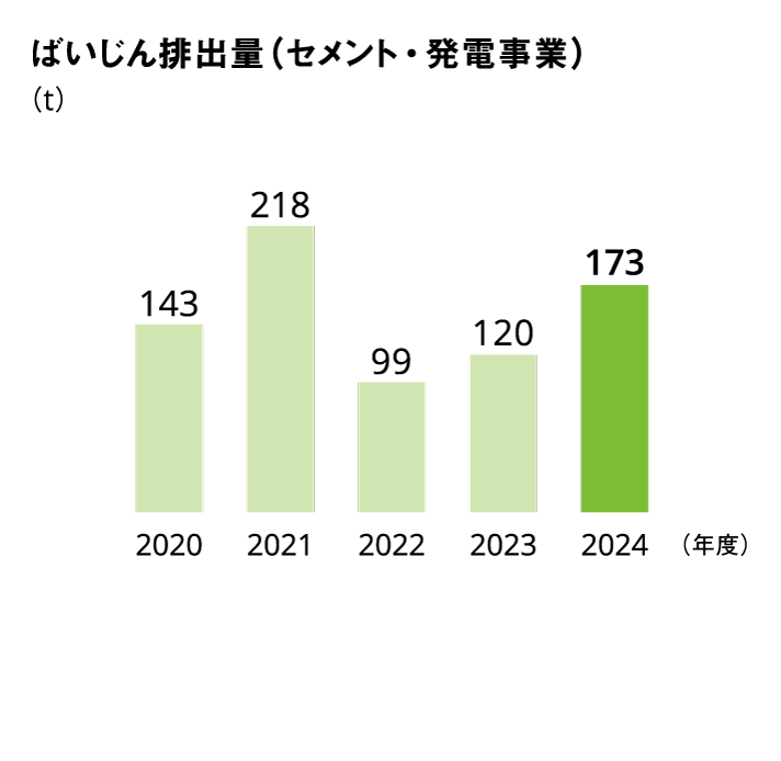 セメント製造設備や発電設備から発生する排ガス中の化学物質に対して、適切な排出防止措置を講じなかった場合には、負の環境影響だけでなく、法令違反による操業停止といった負の財務影響が発生する可能性があることをリスクとして認識しています。